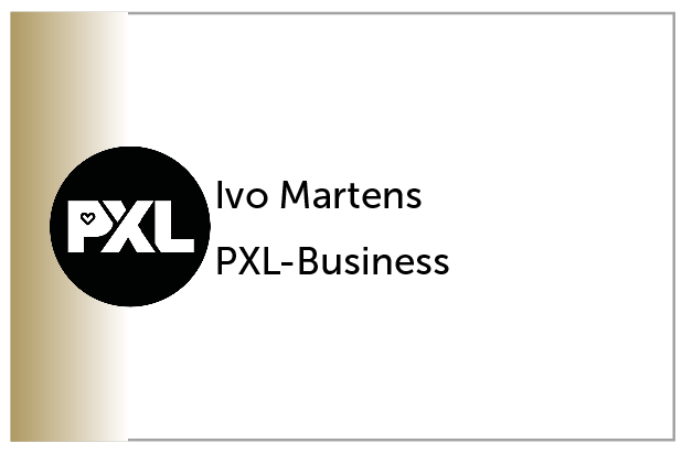 Plaats het PXL-logo met schaal 5% tegen de linkermarge en verticaal gecentreerd.