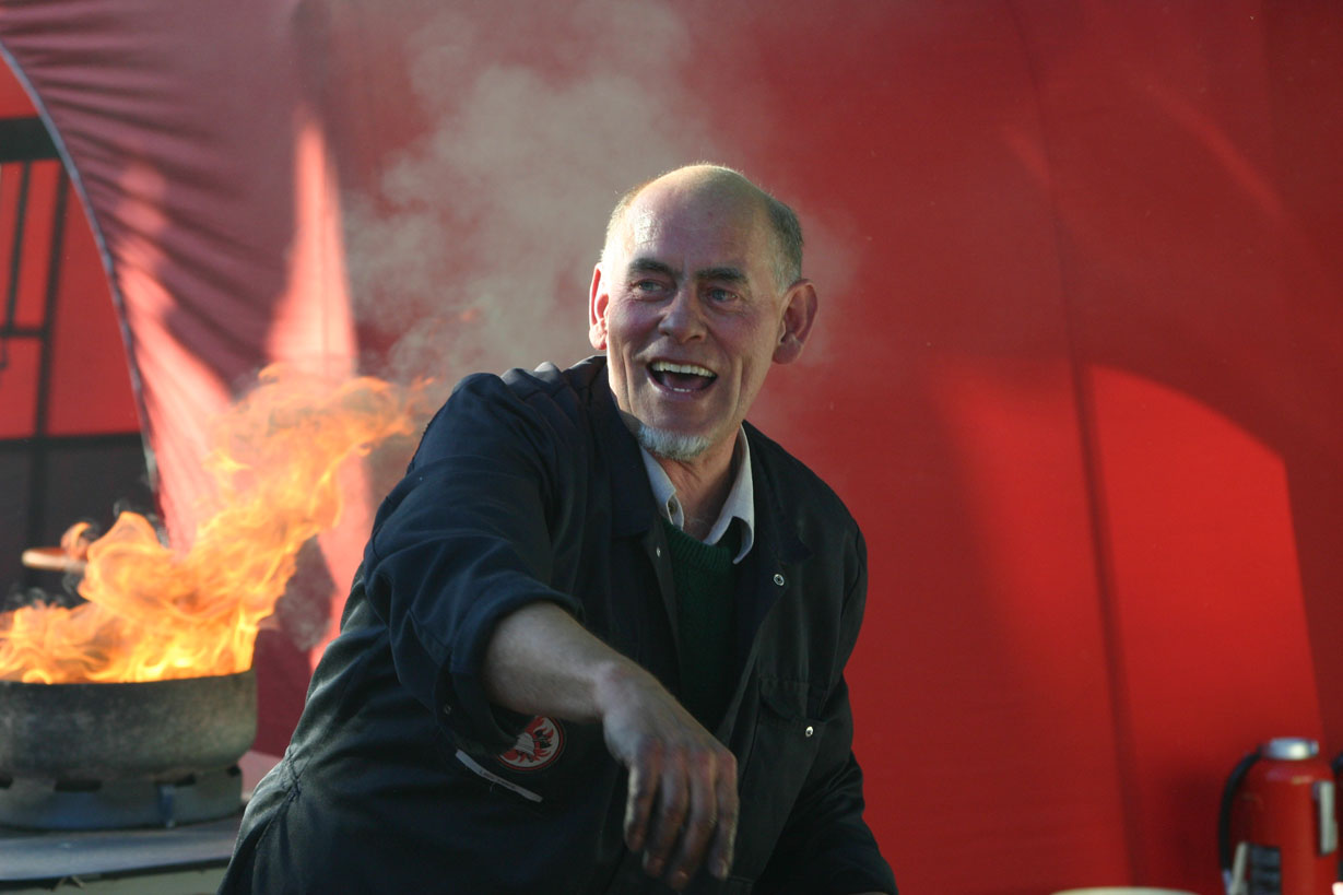 Zet op de achtergrond een gespiegeld verloop van fel geel uit het vuur naar donkerrood, dat loopt van het midden van het document naar rechtsonder.